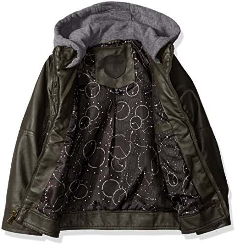 Urban Republic Little Boys' Toddler Faux Leather Jacket with Fleece Hoodie, Dark Charcoal, 2T