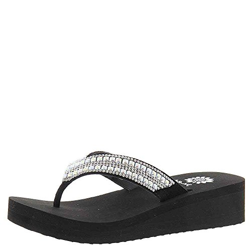 Product Description*Faux pearls lend this beachy thong sandal a sophisticated vibe that's easy to pair with anything *Leather strap with faux pearl accents *Lightly cushioned footned *1-3/4" wedge heel0