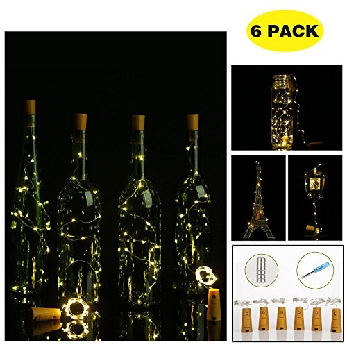 Wine Bottle Lights with Cork, LED Bottle Lights, LED Cork Lights, Copper Wire Bottle Lights, Bottle Cork String Lights for DIY, Party, Decor, Christmas, Halloween, Wedding, Warm White, 6 Pack