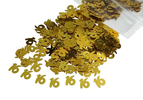 Gold Number 16 16th Anniversary Or Birthday Table Sequins Confetti for DIY Crafts And Party Supplies 1 Ounce by ZXSWEET