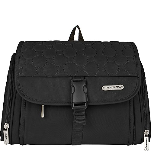 Studio : Travelon Publisher : Travelon Binding : Apparel Product Description Perhaps the perfect toiletry kit, this convenient kit hangs flat from a hook or towel bar for easy access to its contents. With the zippered pockets, compartments, and built-in shelf, there’s a place for everything. When it's time to leave, simply zip it up and tuck it into your suitcase For more than 35 years, Travelon has been making travel easier and safer with products that provide protection, peace-of-mind, safety, security and organization 0