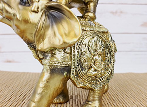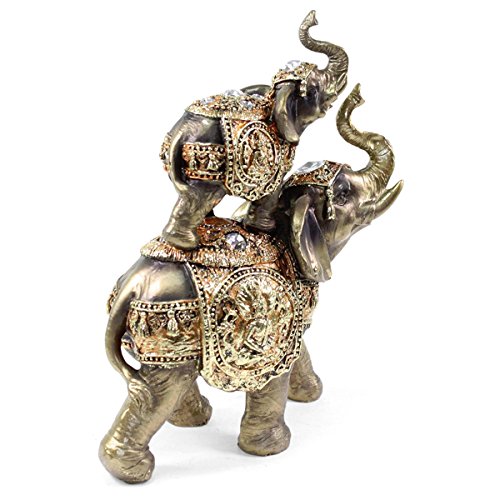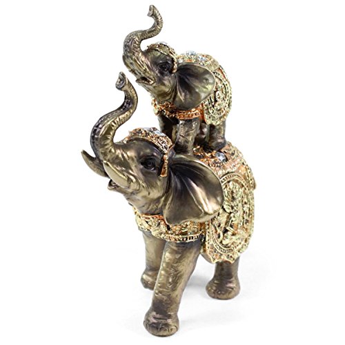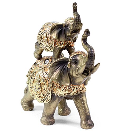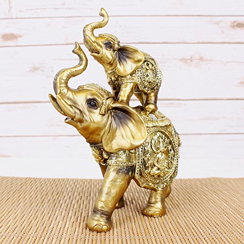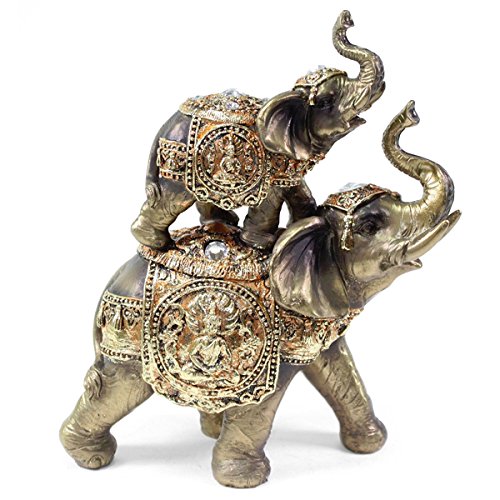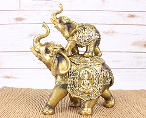 - Antique style statue with the trunks facing upwards to represent prosperity, good luck, and success!! The cloak is finely engraved with a peaceful buddha and beautiful acrylic jewel with striking gold color.