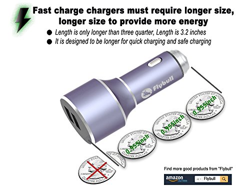 - ★Flybull Car Charger has double intelligent charge management chips, which can intelligently identify charging current and voltage data of your cell phones, and tablet computer, providing them with the best, safest and fastest charging. The double USB ports of the charger can supply maximum 40W charge power altogether.(Don't fit for Japanese cars)