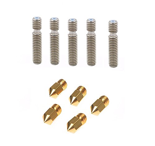 Happisland 5Pcs 26mm M6 Nozzle Throat + 5Pcs 0.4mm 3D Printer Extruder Brass Nozzle for MK8 Makerbot Reprap Prusa I3