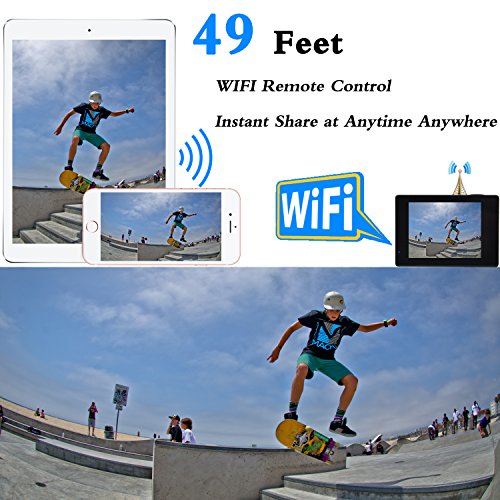 Built-in WIFI: Edit & share your action in minutes. Download App on your phone or tablet and connect with this action camera. Then operate or review the images or videos via Android or iOS devices.