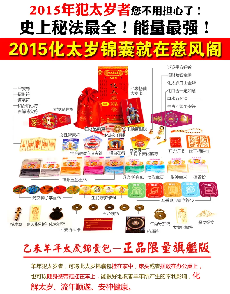 开光李居明化太岁锦囊符包2015乙未羊年