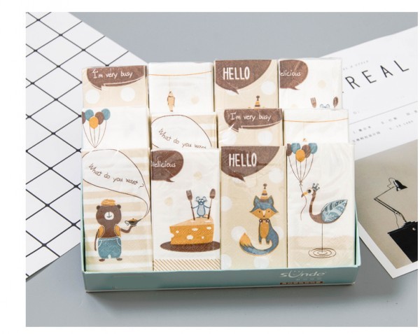 ペーパーナプキンハンカチ ティッシュペーパー 紙ナフキン 紙ハンカチ ポケットティッシュ ペーパーナプキン ペーパーハンカチ サンドイッチ キチン 雑貨 日用品デコパージュ ドリパージュ毎日が楽しくなっちゃうハンカチサイズのペーパーナプキン!!★スマートサイズなのでカバンやポケットに入れておくと便利です。可愛くておシャレなので女子力UP◎お友達にプレゼントしてもGood!ピクニックなど、外出先でも大活躍♪おしゃれに包んで、レジャーやパーティーが楽しくなりそうです♪使い方いろいろの、素敵な柄のナプキンです!ハンカチサイズ:330mm×330mm2枚重ね20枚入り×10袋パッケージサイズ:165mm×165mm×25mmお肌・環境に優しいパルプ素材厚みのある良い質感柄は豆オイルでプリントされ、綺麗な発色と安全性を兼備水に濡れても破れにくい丈夫なペーパーハンカチ高温で殺菌処理を行い、安心して使える◎