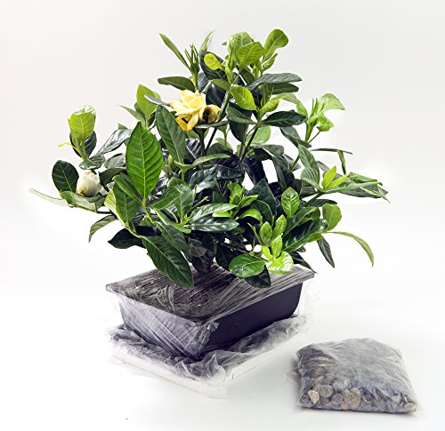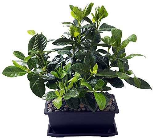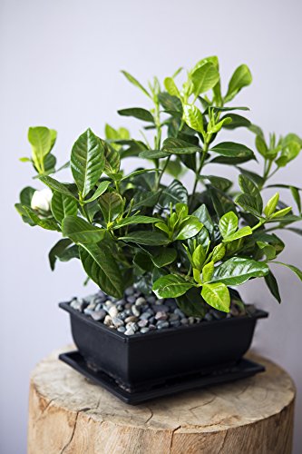 Includes One Gardenia Bonsai Tree Plant (About 5x7 inches or larger) in a Black Bonsai Pot with accenting pebbles to be placed over the soil