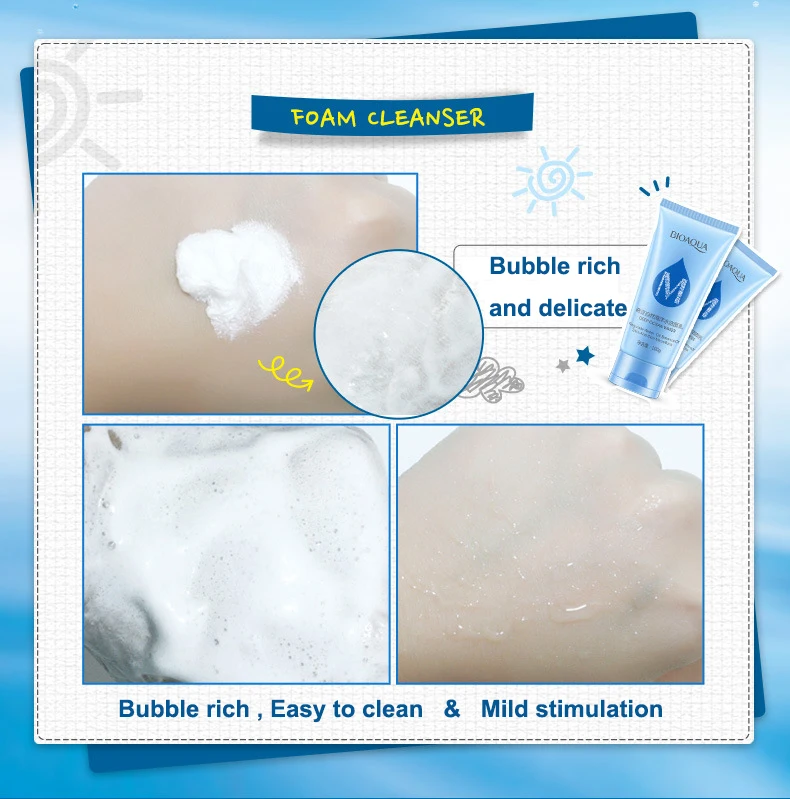 Mild formula without stimulation,exquisite foam can deeply clean facial dirt and cosmetics residue,strengthen skin horny and improve skin sensitivity and provide adequate moisture for skin ,after using,skin is refreshing and soft without tight feeling.