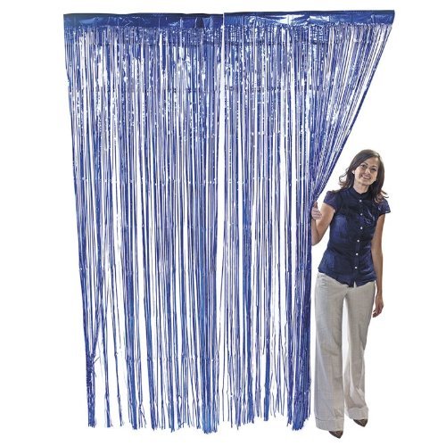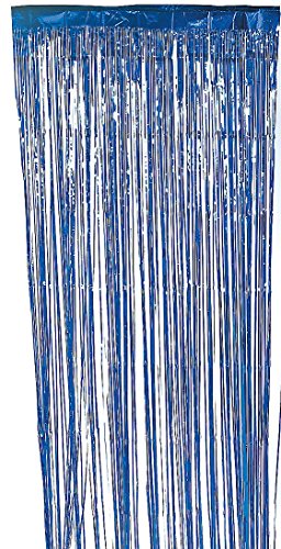 Give your event some extra pizzazz with this metallic blue fringe curtain! Foil fringe curtains make the perfect backdrops at parties or DIY photo booths, are great for decorating doors and can also be used to edge tables. 3 ft. x 8 ft.Feature