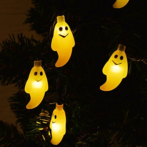 JOJOO Halloween Ghost String Lights - 20 LED 6.5ft Battery Powered Flashing LED String Lights for Halloween, Indoor, Party & Cosplay Decor, Warm White LT016W