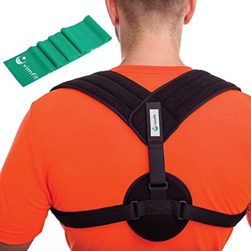 VIMFIT Posture Corrector Shoulder Brace With Complimentary Resistance Band & Video | Breathable, Comfy & Adjustable Clavicle Brace | Soothe Upper Back Pains, Aid Spinal Alignment & Strengthen Muscles