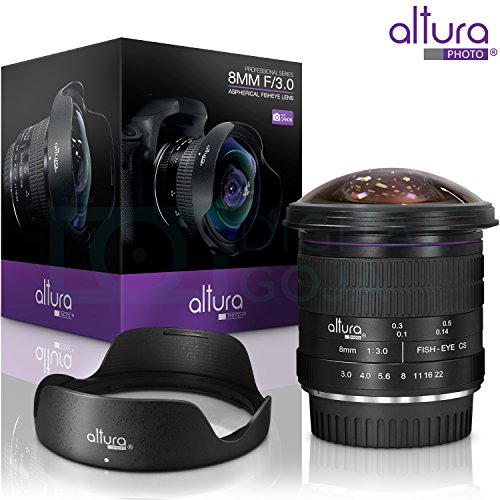 Altura Photo 8mm f/3.0 Fisheye Lens for CANON DSLR AP-8MC Professional Ultra Wide Angle Aspherical Fixed Lens with Removeable Lens Hood and Protective Carry Case