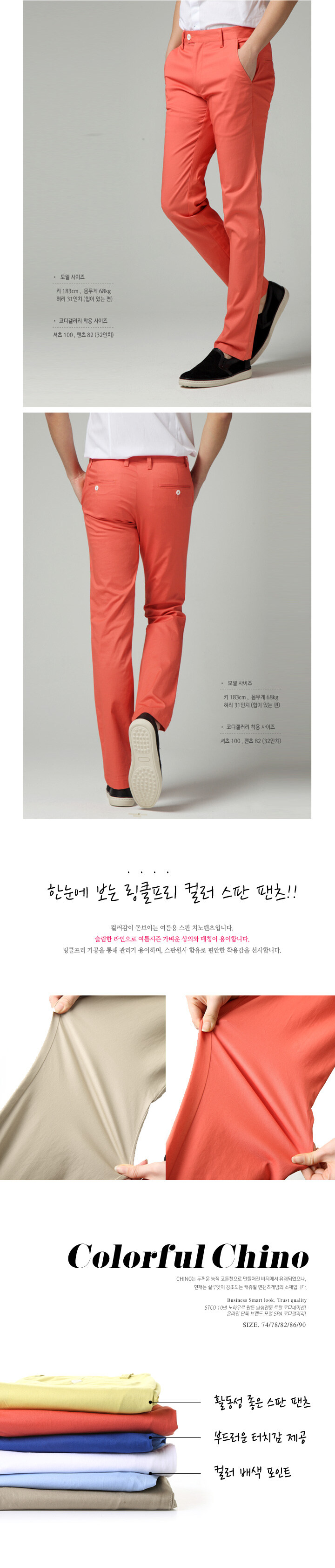 74(28):ウエスト76/ヒップ96/ワタリ56/股上(前)23/股上(後)36/裾31/総丈102