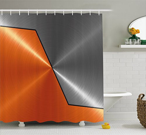 Copper Shower Curtain by Ambesonne, 3D Style Machinery Structure Image Detailed Vivid Modern Design Contrast Colors, Fabric Bathroom Decor Set with Hooks, 84 Inches Extra Long, Orange Gray