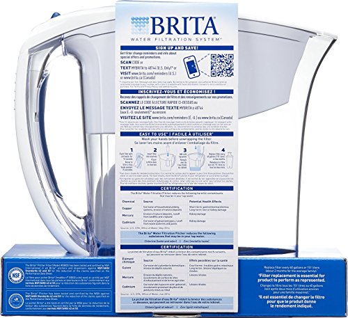 -. Feature : Space saving, white, 6 cup water filtration pitcher with 1 advanced filter / 1 Brita water filter can replace 300 standard 16.9 ounce plastic water bottles / Reduces chlorine taste and odor, zinc, copper, mercury and cadmium / BPA free pitcher with easy fill lid and comfort grip handle / Filter indicator for tracking when to change the water filter