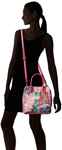Medium expandable convertible tote-magnetic snap closure entry to main compartment. Extended zippered gusset. Inside full length zippered wall pocket, 2 multipurpose pockets. Rear full length zippered wall pocket, slip in cell pocket. Removable leather coin purse. Short rope handle with drop of 5 inch. Detachable, adjustable cross body strap with drop of 14 inch-26 inch. 12 inch x 11 inch x 4 inch