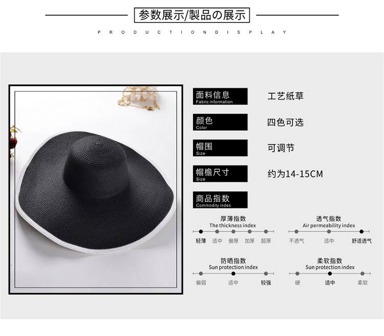 | [해외][Dexing] 한국어 스타일의 큰 바이저 해변 태양 바이저 모자 여성 태양 여름 모자 챙이 넓은 밀짚 모자 비치 chapeau 팜므 |