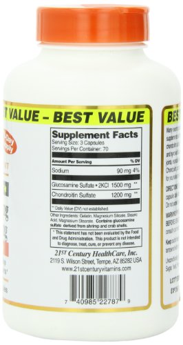 21st Century Glucosamine 500 mg and Chondroitin 400 mg Capsules, 210 Count