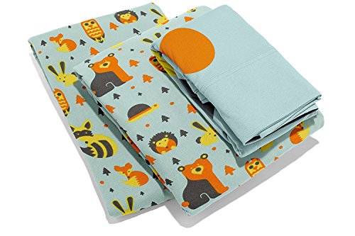 Toddler Reversible Bedding Set Woodland Creature - Adorable 4 Piece Set (1 Flat sheet, 1 Fitted sheet, 1 Pillowcase, & a Comforter) that fits a Toddler or Crib Mattress by Where The Polka Dots Roam