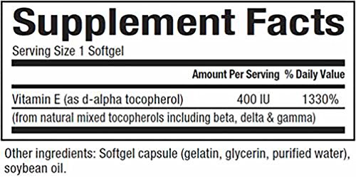 AN EASY TO SWALLOW SOFT GEL: This supplement contains 400 IU (International Units) of pure vitamin E in the form of d-alpha tocopherol.