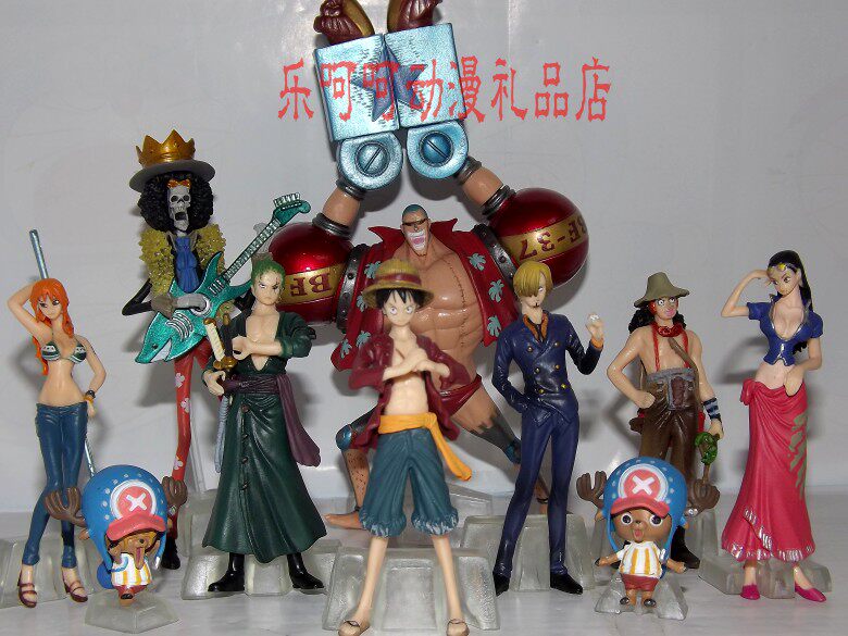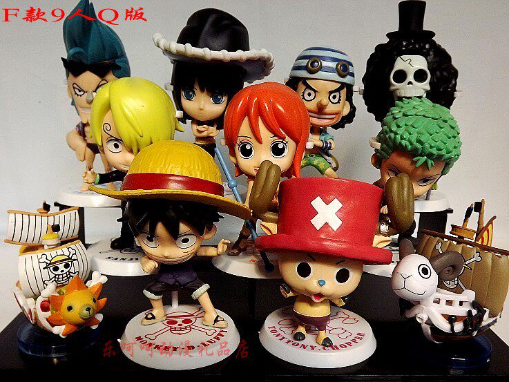 F款9人Q版 路飞海贼团成员9人,高约8--12厘米,环保PVC材质,透明袋装