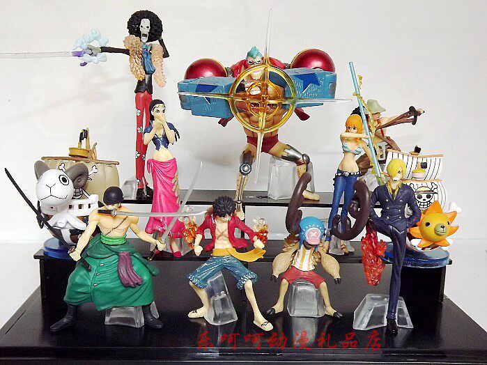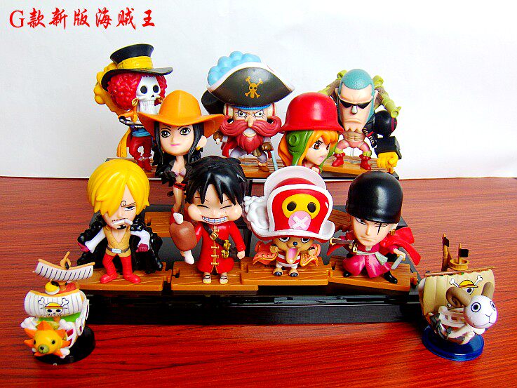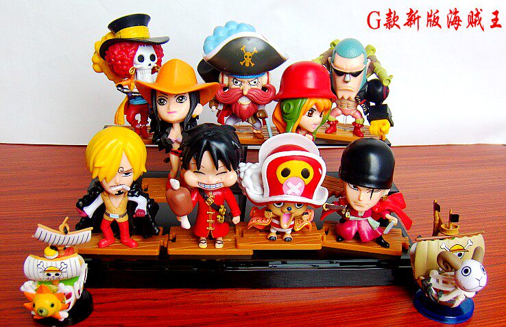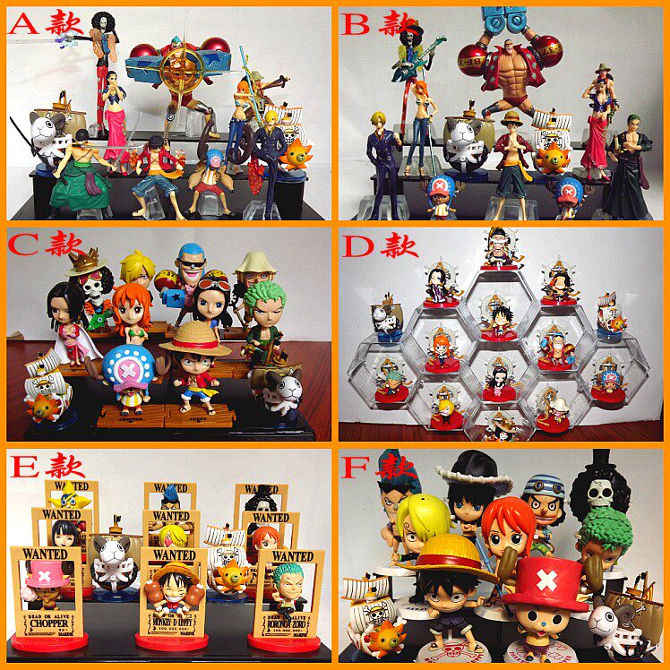 D款海贼王 一套12个公仔,公仔高约5厘米,船坨高约7厘米,高级PVC,高档彩盒装
