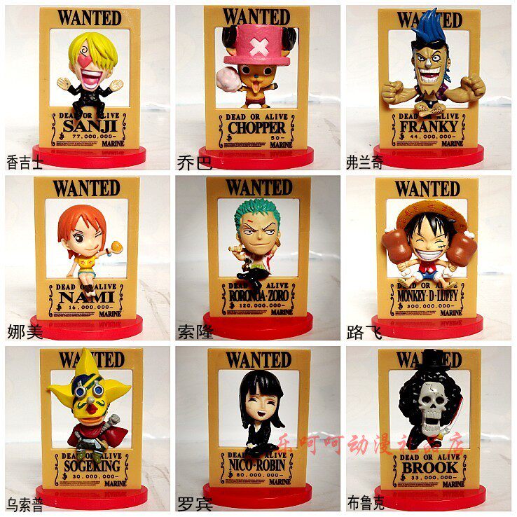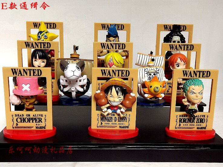 E款通缉令 路飞海贼团成员9人,高约7.5厘米,PVC材质,自配高档精美礼盒装