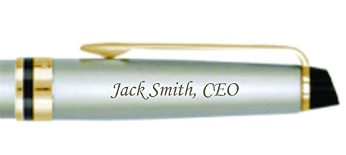 -. Feature : Free standard engraving included, up to 24 character and spaces max. / Comes in a Waterman pen gift case. / Genuine Waterman Expert Ballpoint Twist Action Pen, Made in France. / Engraving shows up a smokey gray. Engraving time is 1-2 business days. / Ballpoint pen twist action personalized pen, stainless with real gold plated trim.