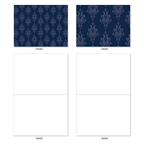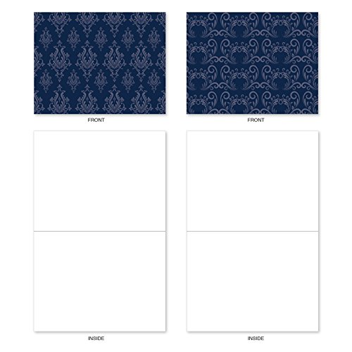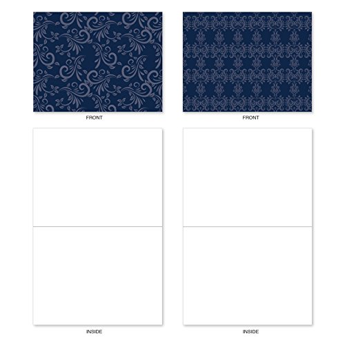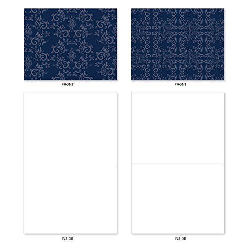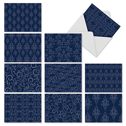 M1776BN Indigo Blues: 10 Assorted Blank All-Occasion Note Cards Feature Repeating Patterns in Blue, w/White Envelopes.