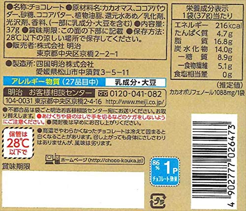 原材料:カカオマス、ココアパウダー、砂糖、ココアバター、植物油脂、還元水あめ、乳化剤、光沢剤、香料、(一部に乳成分・大豆を含む)