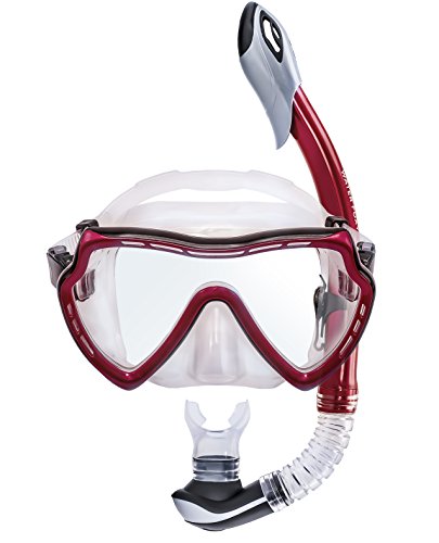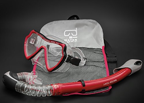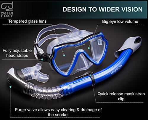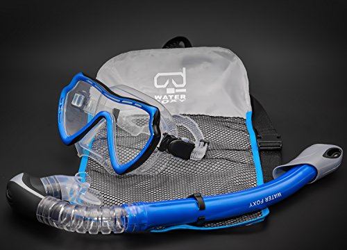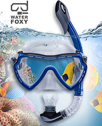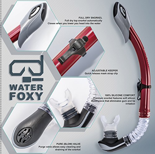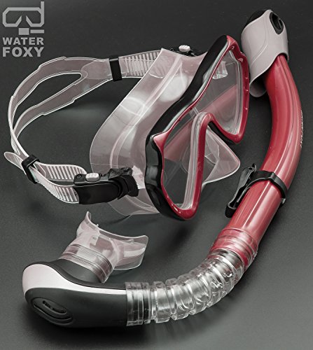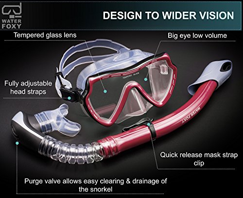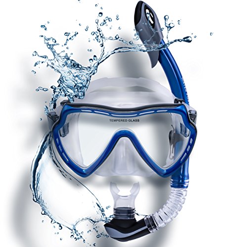 Snorkel Set with diving mask and dry Snorkel - Single lens swim mask with Anti-fog Protection and Tube with Purge Valve Anti-Splash Guard for Kid, Youth and Adult Divers