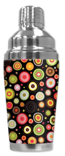 -. Title : Mugzie 855-SHA "Colored Circles" Cocktail Shaker with Insulated Wetsuit Cover, 16 oz, Black
