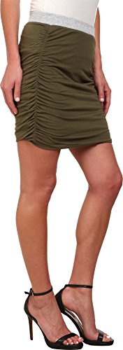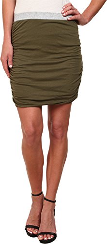 Soft jersey skirt features flattering gathering at sides. Contrast ribbed elastic waist. Straight hemline. 50% Supima® cotton, 50% Micro Modal®;