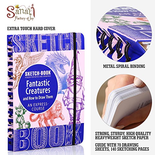 Sketch Book - Spiral Bound Sketchpad with Drawing Paper - How To Draw Fantastic Creatures Drawing Book - 70 Sheets, 140 Pages, 8.3"x 5.8" (Small)