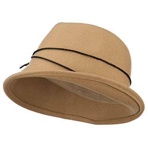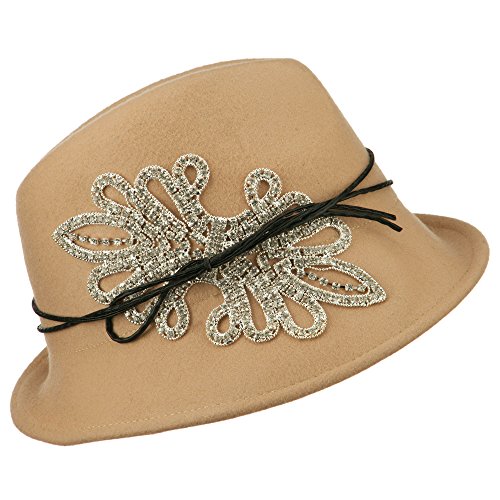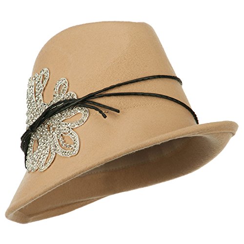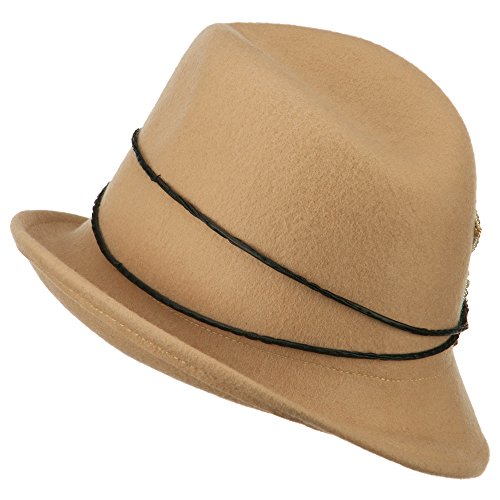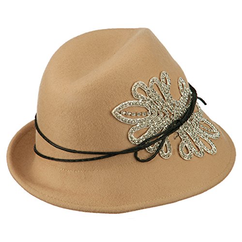 -. Title : Ladies Wool Felt Stones Fedora - Camel