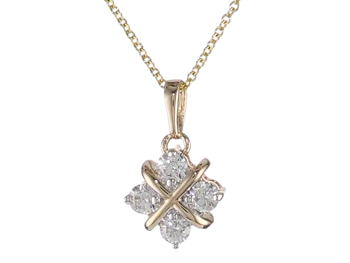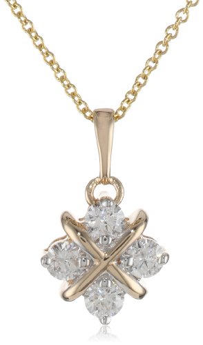 14k Yellow Gold Diamond Hugs and Kisses Pendant Necklace (.38 cttw, H-I Color, I1-I2 Clarity)