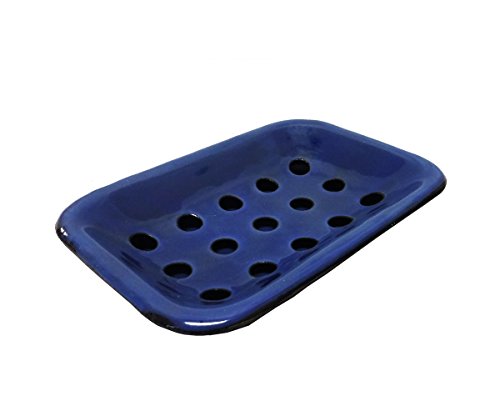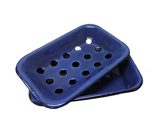 Vintage Style Metal Enamel Soap Dish w/ Drainage Holes-Blue