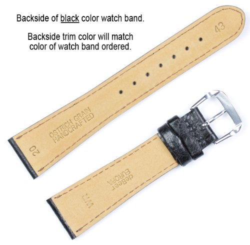 -. Feature : 20mm wide where it connects to the watch. (18mm at the buckle) / Mens standard length (7.5") / Fine Italian Leather with rich ostrich grain embossing. / From the deBeer Europa collection. / FREE SHIPPING!