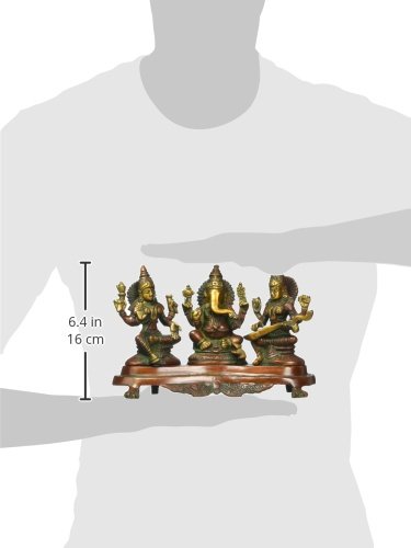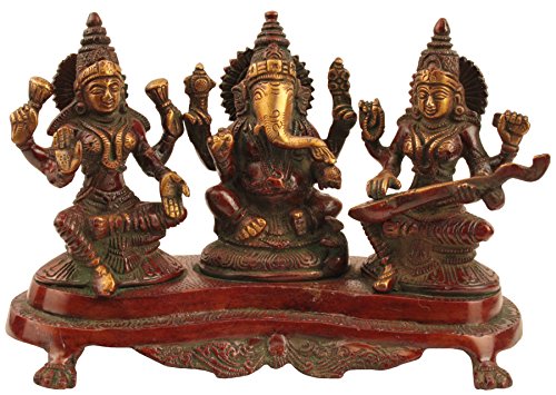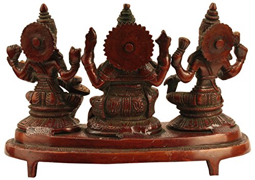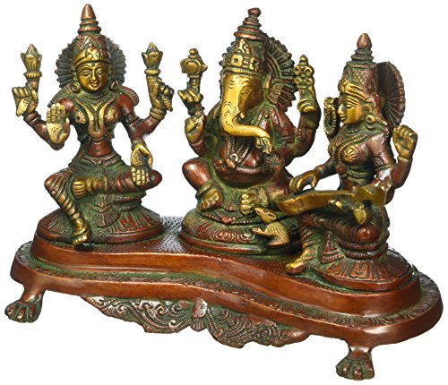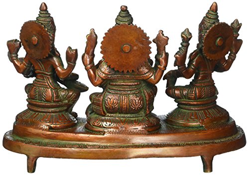 Kapasi Handicrafts, Antique Hindu God Ganesh, Goddess Laxmi and Saraswati Brass Sitting Idol S (9 x 4.5 x 6.5 Inches)