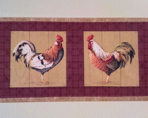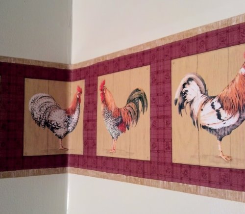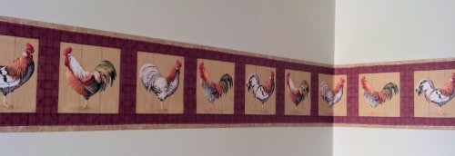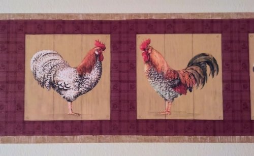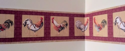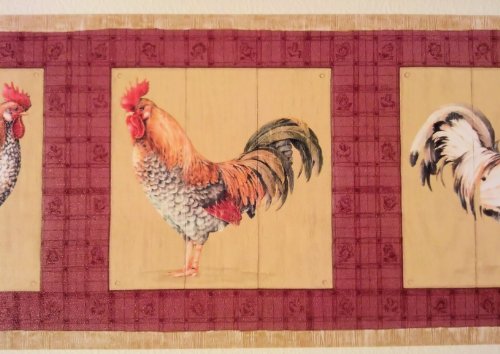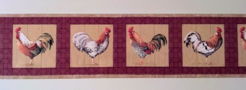 -. Title : Rooster Farming Farm Country Barnyard Animal Wallpaper Border - Red
