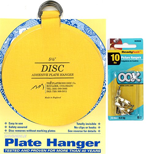 Flatirons Disc Set of Four 5.5 Inch Adhesive Plate Hangers and OOK Readynail 10lbs. Picture Hooks (6 Hooks in Package) - Bundle of 2 Items