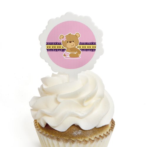 Cupcake toppers include 12 white decorative cupcake picks and 24 round sticker labels.