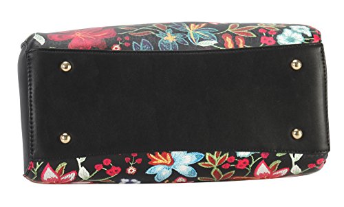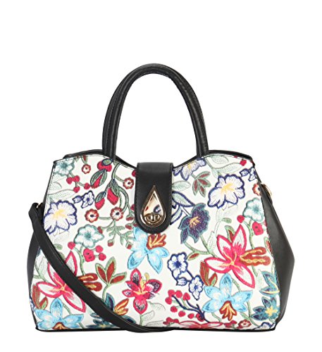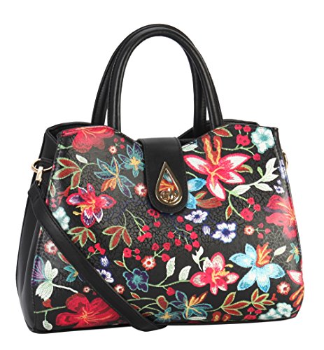 High Quality PU Leather Floral Embroidered Pattern Large Multi Spaced Tote with Removable Strap.