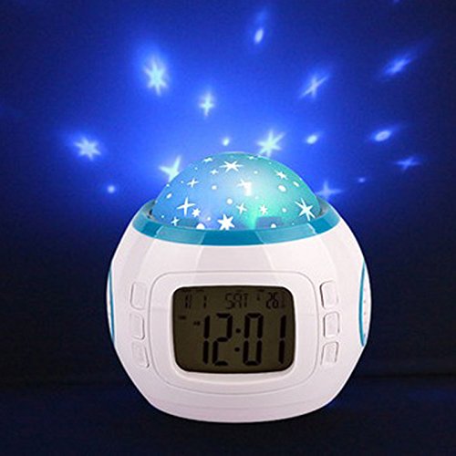 -. Title : Alarm Clock Children Sleep Clock Color Change Starry Night Sky Star Projection Music Digital Clock With Backlight Led Nigh Light Calendar Thermometer for Children Kids Baby Boys Girls Bedroom
