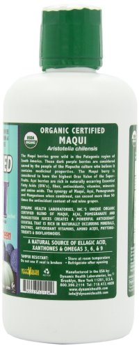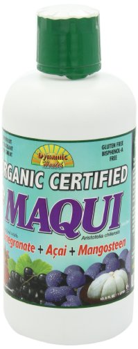 ReleaseDate : 2015-06-22 Studio : Dynamic Health Publisher : Dynamic Health Binding : Health and Beauty Product Description luten Free USDA Organic Bisphenol-A free Aristotelia Chilensis super fruit antioxidant supplement fortified with Pomegranate, Acai and Mangosteen Maqui berries contain the highest ORAC value of any known berry and is a rich source of vitamin A, C, calcium, iron, potassium and anythocyanins. Maqui berries have been traditionally used to boost the immune system and help neutralize free radicals. Our unique organic certified blend is synergistically formulated to create a super antioxidant cocktail with the added natural benefits of Acai, Pomegranate and Mangosteen. Some of the traditional benefits of each key ingredient: Organic Maqui supports healthy aging helps cells from oxidative stress supports healthy inflammatory function supports immune system health support Cardiovascular health treats sore throat, diarrhea, ulcers and fever Organic Pomegranate Juice Helps maintain a healthy heart. Has naturally occurring high levels of ellagic acid. 0