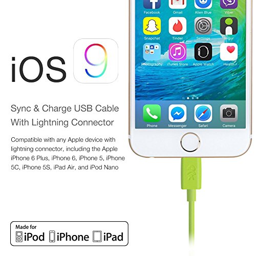 KewlKit Color Your World [Apple MFi Certified] 3.3 Ft / 1M Lightning USB Charger and Sync Cable for iPhone 6s plus / 6 Plus / 5 / 5s, iPad Pro Unique Rainbow Colorful Cord