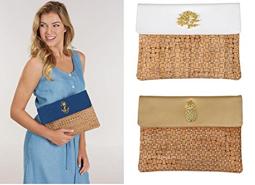 -. Brand : Mud Pie -. Department : womens -. Feature : Basket weave cork clutch features shiny gold sea life icon, pebbled faux leather flap accent and magnetic snap closure. / Perfect as an on-the-go cosmetic bag. / Size: 8" x 11". / Choose from: Gold Pineapple, Navy Anchor and White Coral. / Each design sold separately. -. Model : 8613304 -. ProductGroup : Shoes -. ProductTypeName : HANDBAG -. Title : Mud Pie Women's Fashion Beach Sea Life Icon Cork Clutch Purse