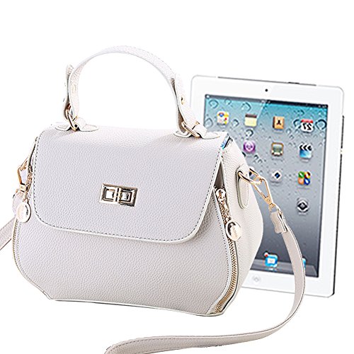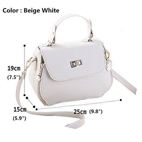 -. Feature : Attention:The color White is Beige White,not Pure White.Fabric:PU leather;Lined:polyester / Dimension of handbag:25*15*19(L*W*H)(CM)/9.8*5.9*7.5(L*W*H)(in) Include 1 main pocket,1 phone pocket,1 card pocket and 2 zipper pockets. / There is a shoulder strap come with the handbag,so you can use it as top handle bag or shoulder bag. / The tote bag offers plenty of storage for your umbrella,cosmetic,wallet,phone,etc.Zipper closure makes bag on and off easily. / This cross body bag is perfect for dating,working shoping ,traveling.etc.There may be a little color difference due to different computer display.