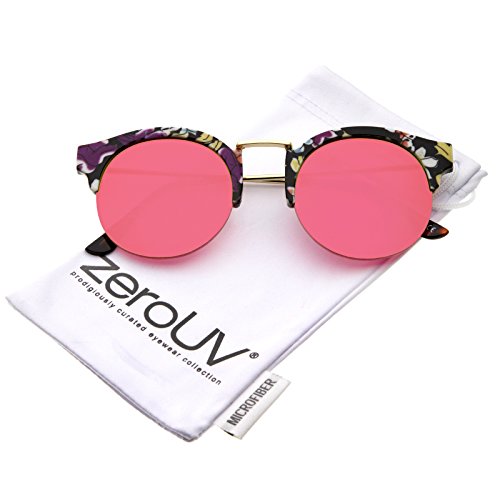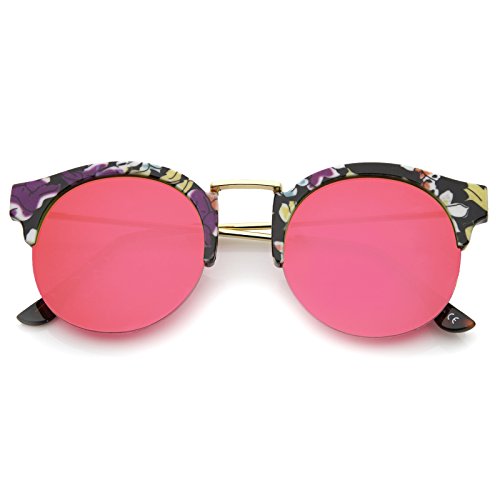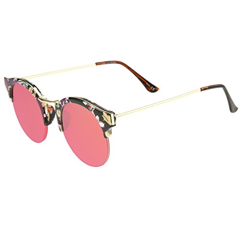 zeroUV - Women's Semi-Rimless Printed Frame Color Mirror Lens Round Sunglasses 53mm